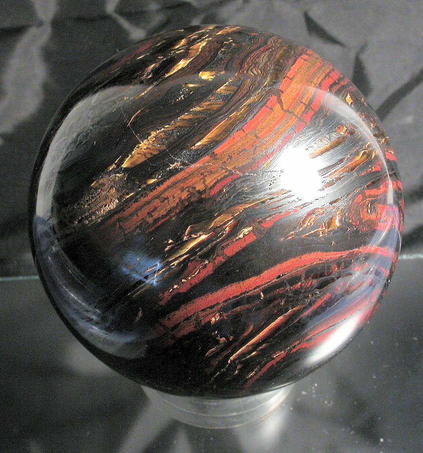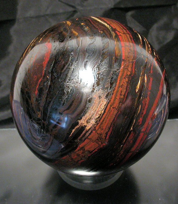 View 2 Extra fine Tiger Iron sphere Shamanic meditation/healing energies hematite, jasper & tigereye fine polish very limited supply 70mm dia 2 3/4 inch diameter other sizes available item #tisphere70 $345.99 |
